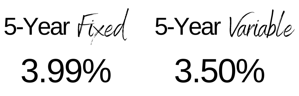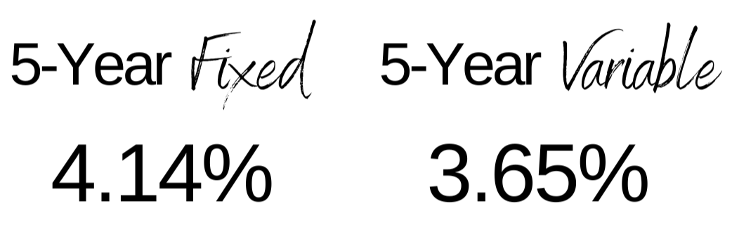 Interest rate is dependent on down payment, credit score, amortization, closing date and lender.